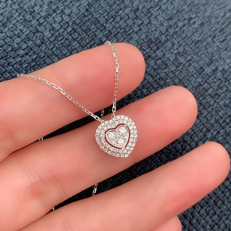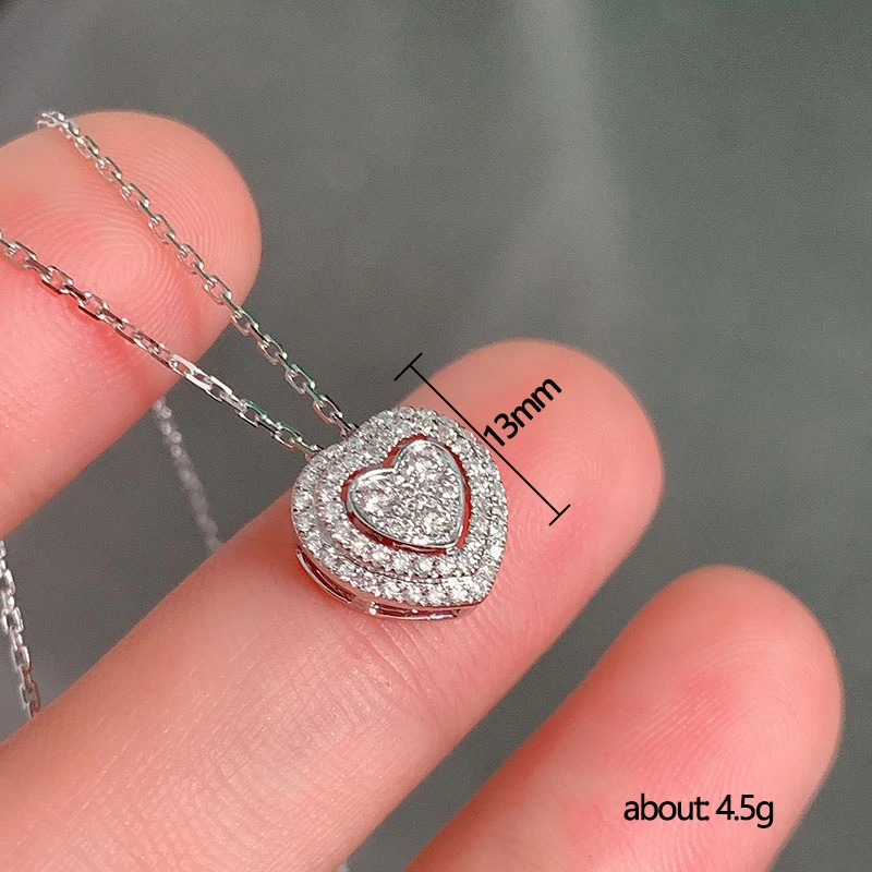 Collier pendentif double cœur en diamant et zircon, style coréen