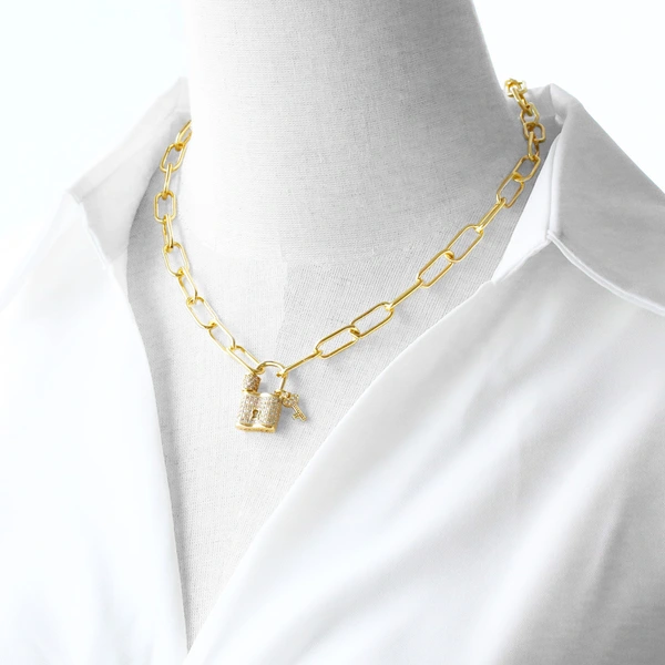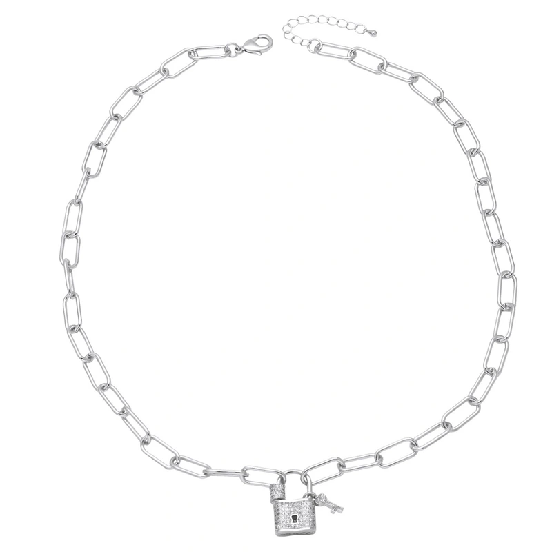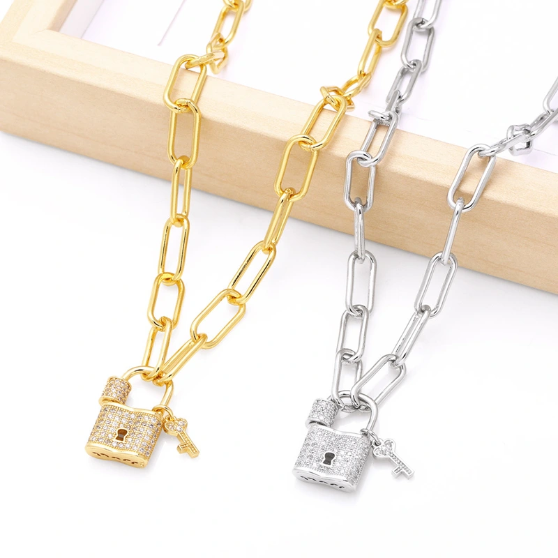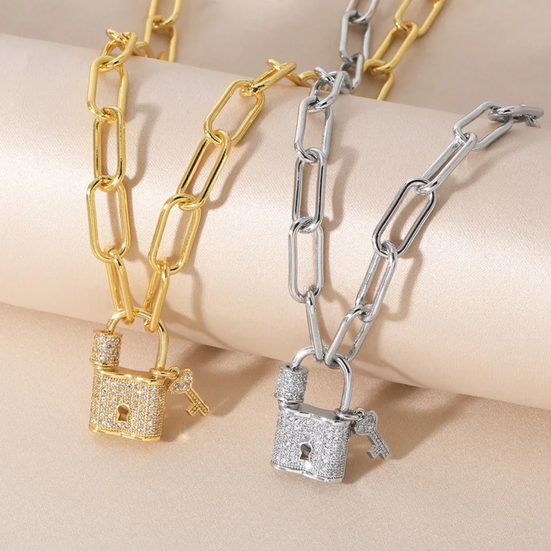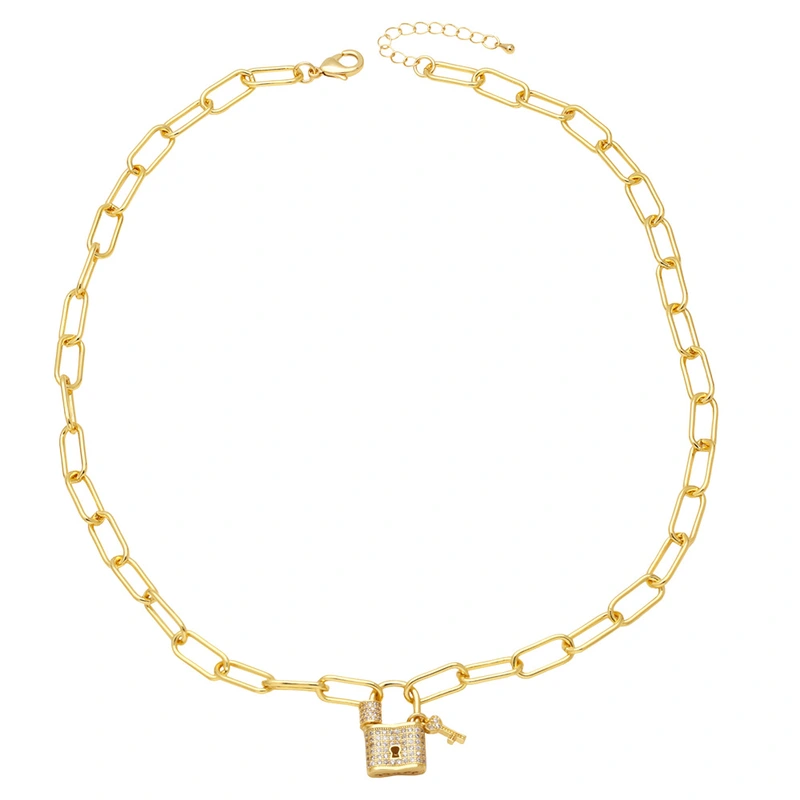 Collier pendentif en forme de cadenas pour femme, bijou européen et américain, plaqué or, micro-incrusté de zircons, chaîne de clavicule, nks70