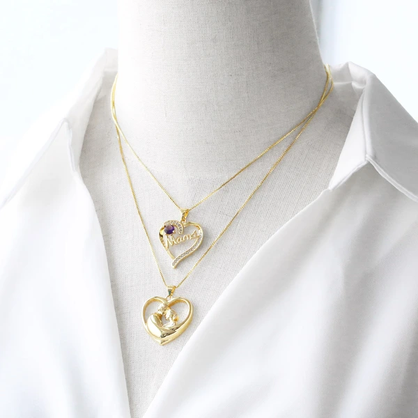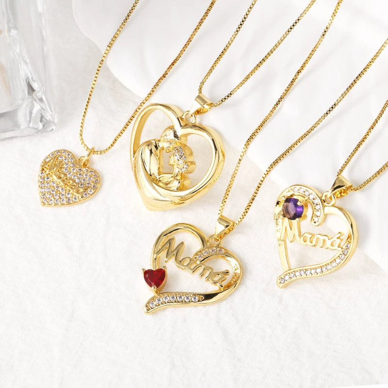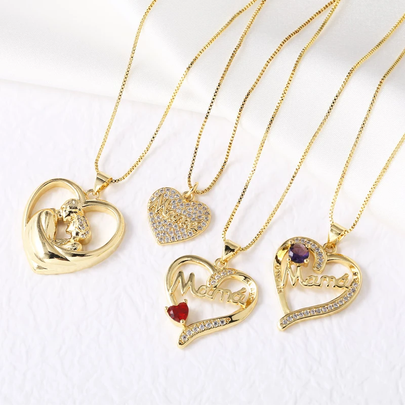 Collier pendentif en forme de cœur en zircon pour la fête des mères, chaîne de clavicule, tendance, nkb169