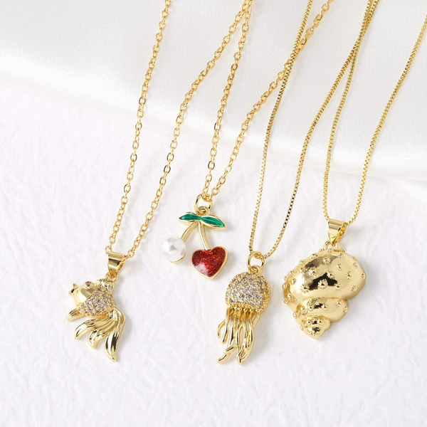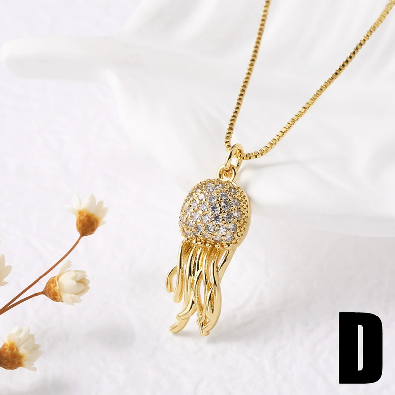 Collier pendentif en or 18 carats plaqué cuivre, en forme de pieuvre, vente à chaud, nkq64
