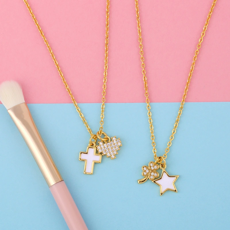 Collier pendentif étoile à cinq branches en diamant et trèfle à quatre feuilles pour femme, croix européenne et américaine, NKR43