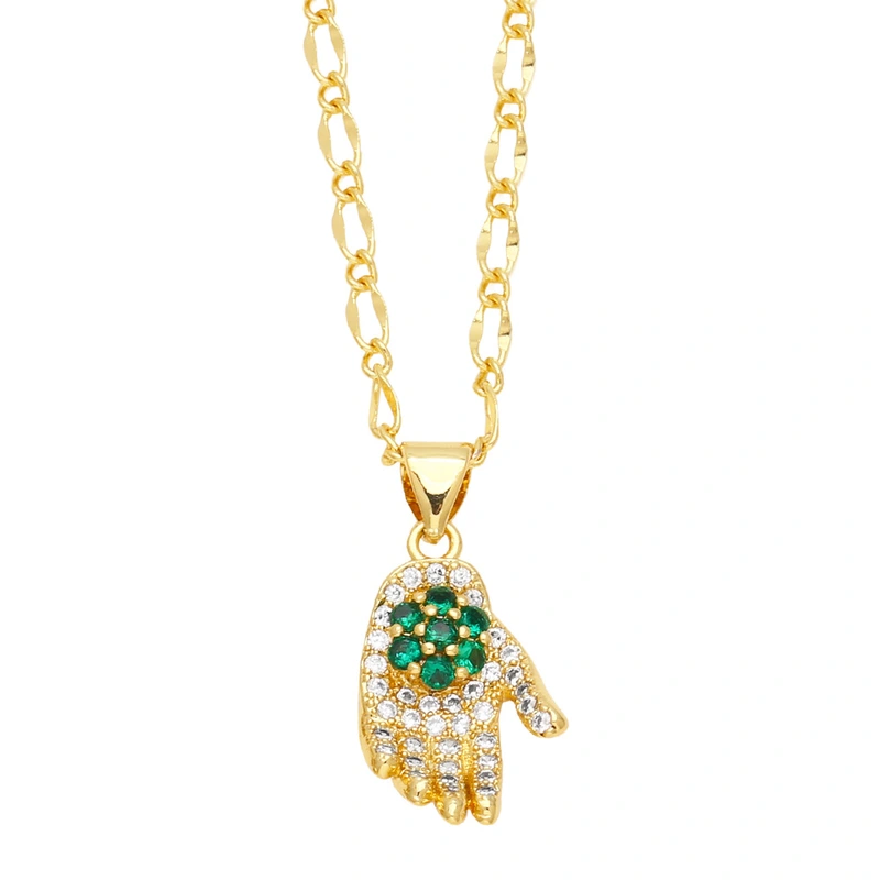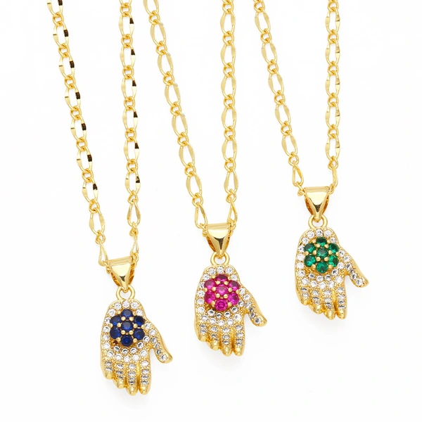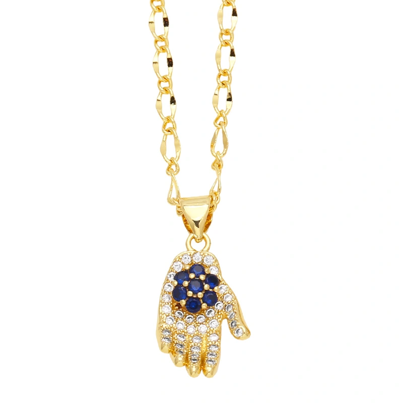 Collier pendentif fleur de palmier incrusté de zircons, bijoux européens et américains en gros, nku80