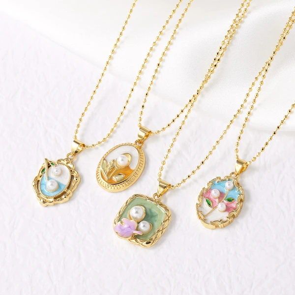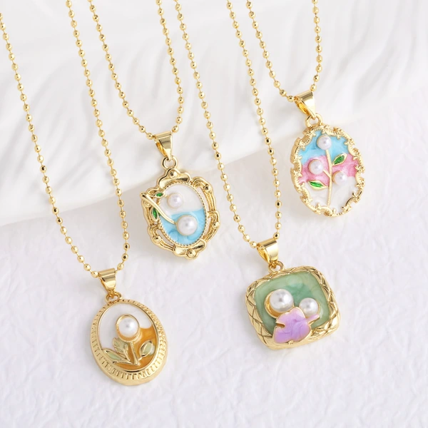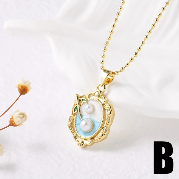 Collier pendentif fleur en forme de goutte d'huile de perle européenne et américaine, chaîne de clavicule, nkb813