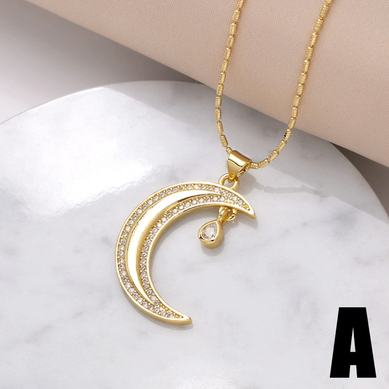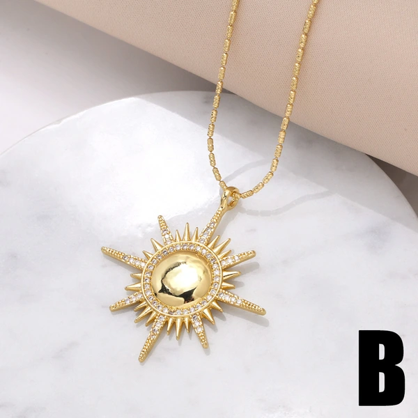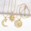 Collier pendentif lune plaqué cuivre véritable or incrusté de zircon soleil hip hop chaîne de clavicule nks18