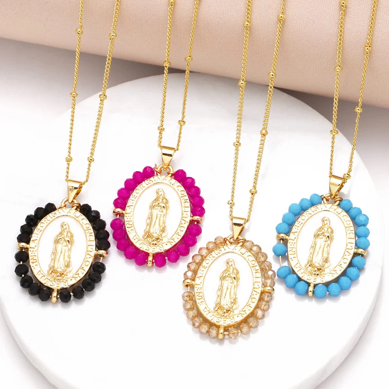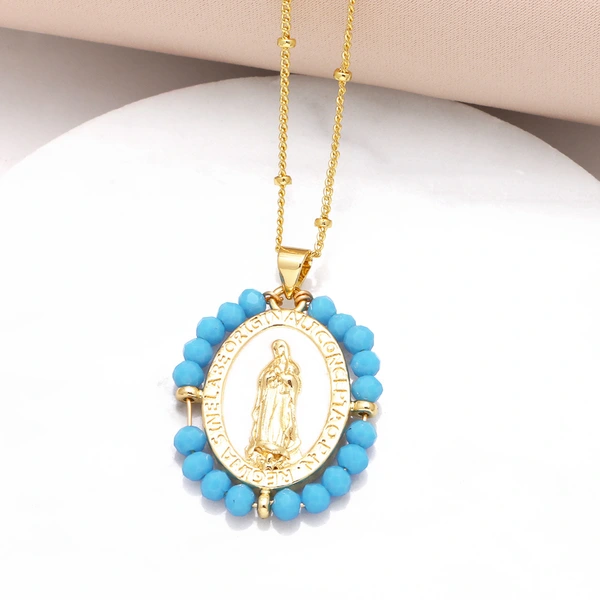 Collier pendentif Madonna en plaqué or 18 carats, bijou européen et américain, chaîne de clavicule, accessoires pour femme, nku49
