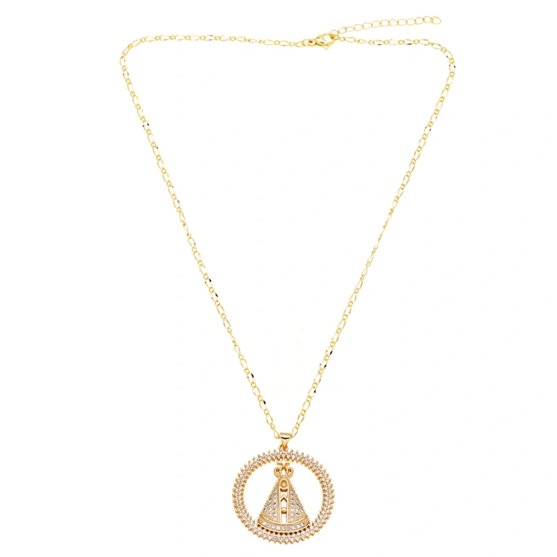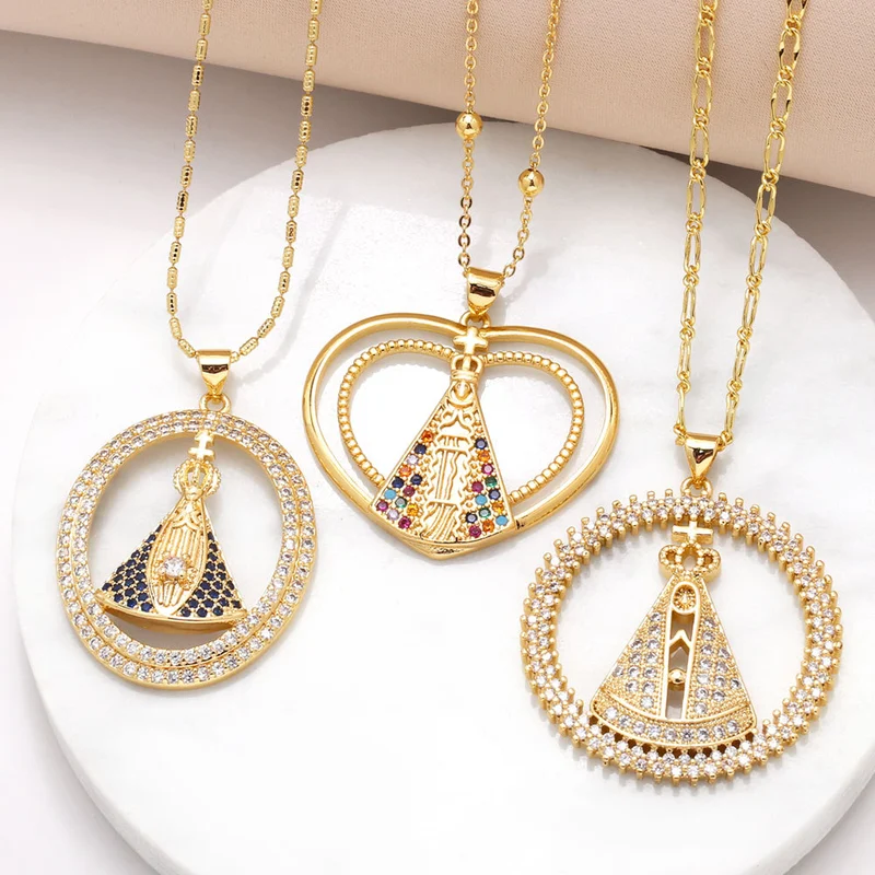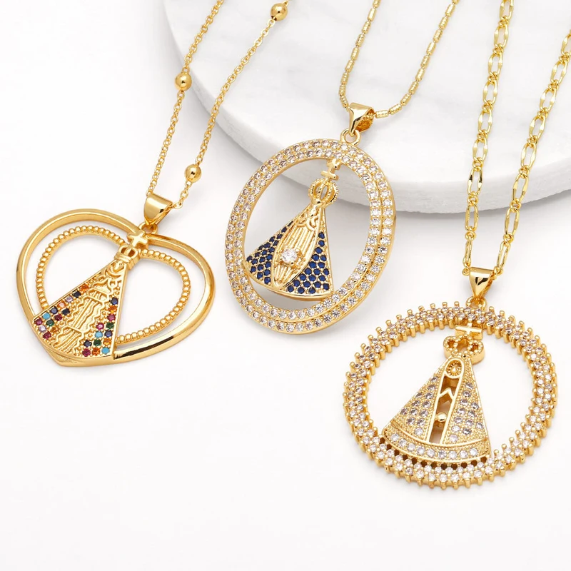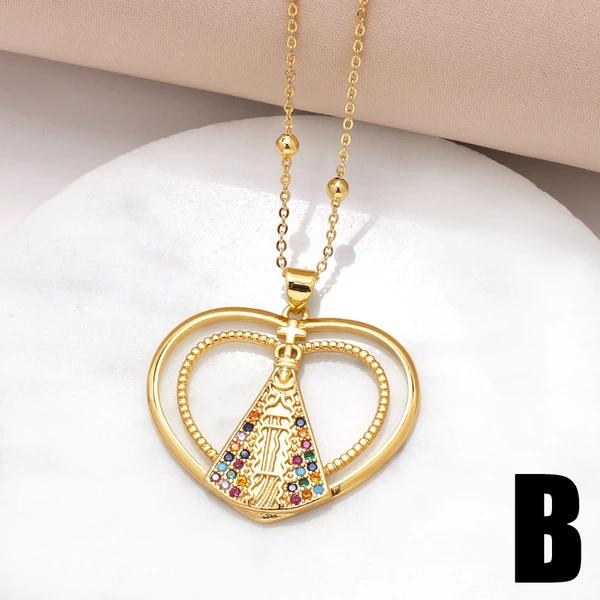 Collier pendentif Madonna en zircon coloré plaqué or, style rétro, disponible en Europe et aux États-Unis, nkb405