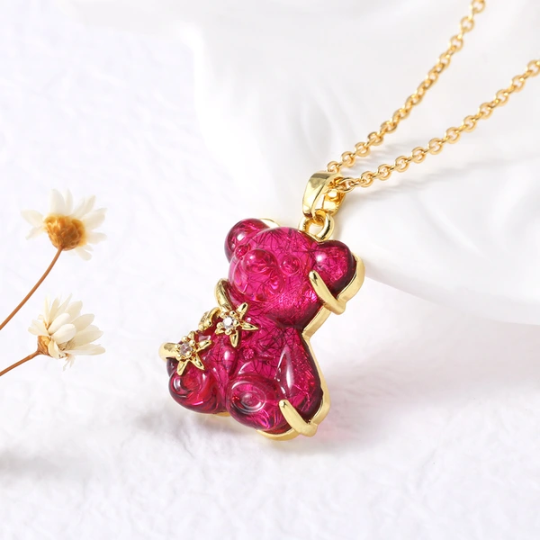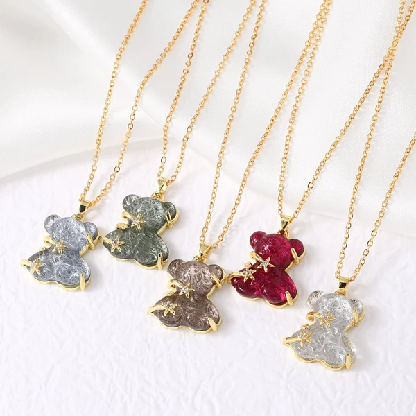 Collier pendentif ours en or véritable plaqué cuivre, bijou européen et américain, nouvelle couleur, nkb049