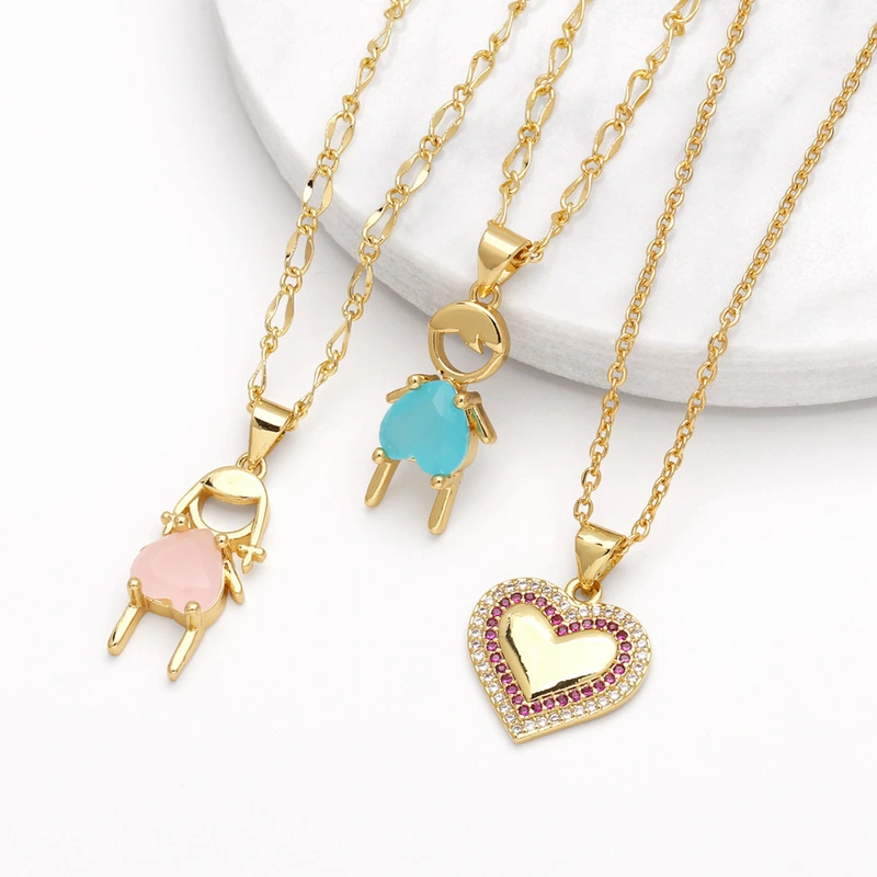 Collier pendentif plaqué or incrusté de zircons pour garçons et filles, chaîne de clavicule d'amour, vente en gros, nka033