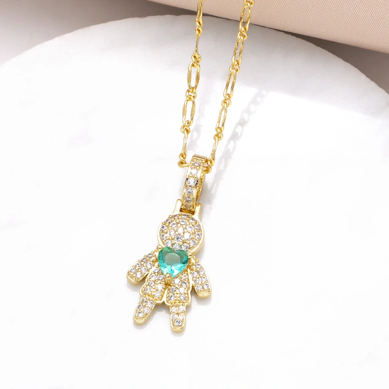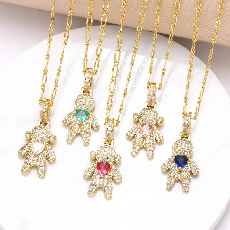 Collier pendentif plaqué or pour garçon et fille, chaîne de clavicule en zircone, nkw33