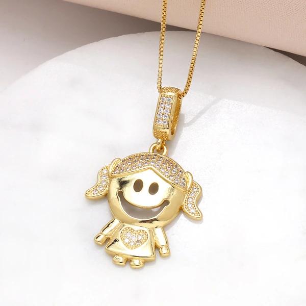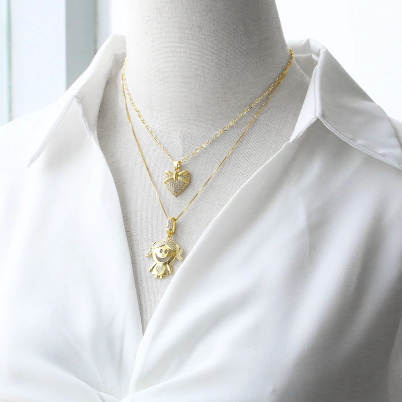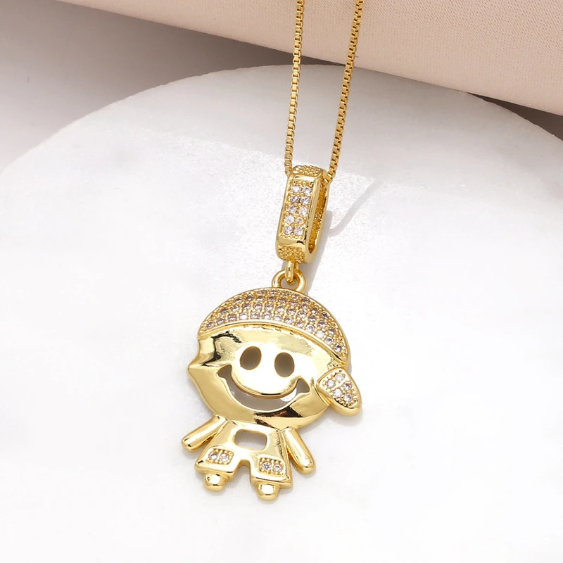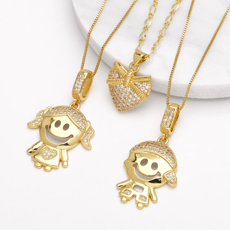 Collier pendentif plaqué or pour garçon et fille, chaîne de clavicule incrustée de zircons, NKB418
