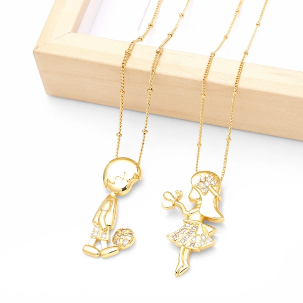 Collier pendentif princesse pour fille et garçon, chaîne de pull en or 18 carats plaqué cuivre, nkv13