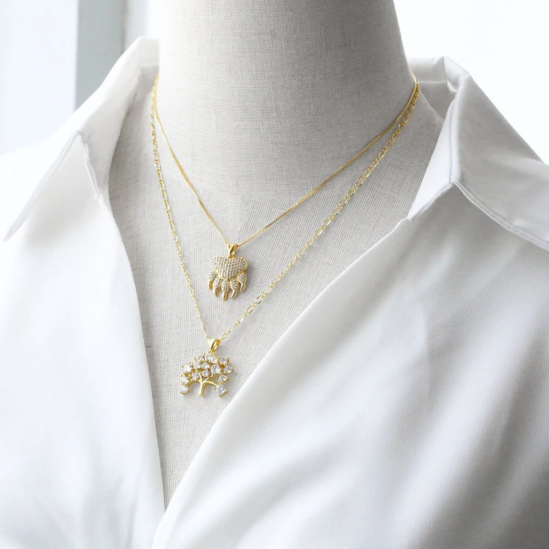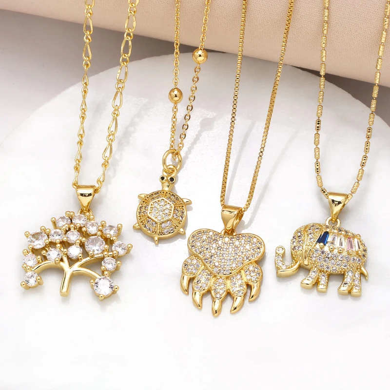Collier pendentif tortue éléphant plaqué or en zircon, chaîne de clavicule griffe d'ours, style européen et américain, nkb490