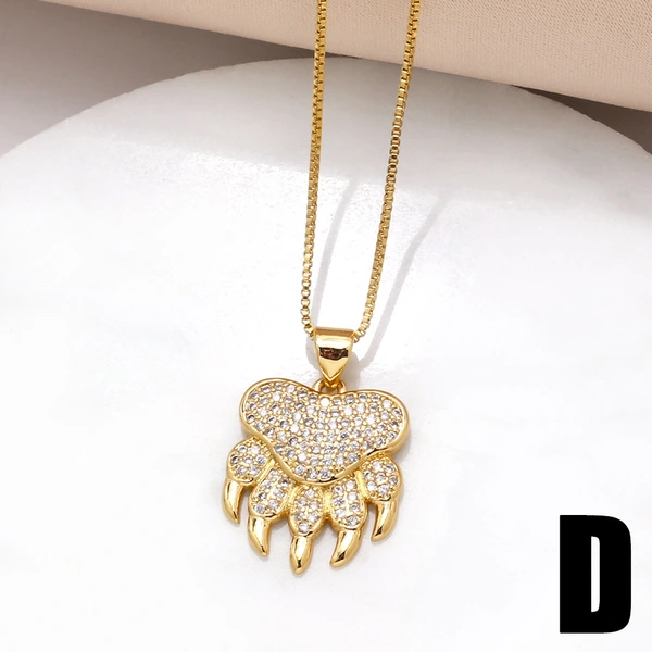 Collier avec pendentif en forme de cœur en forme de lettre, chaîne de clavicule, animal, patte de chat, chien, cadeau pour petite amie