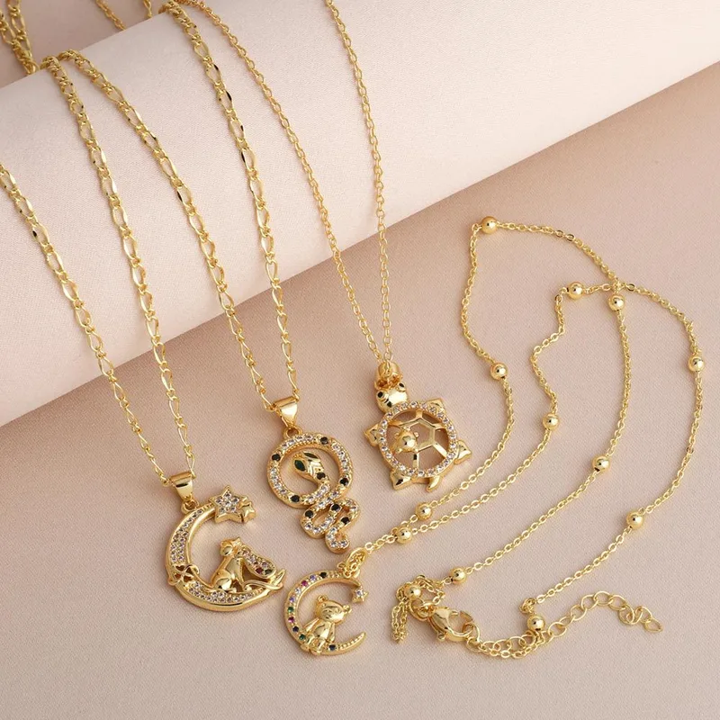Collier pendentif tortue en zircon, bijou tendance, accessoire polyvalent pour femme, nkb868