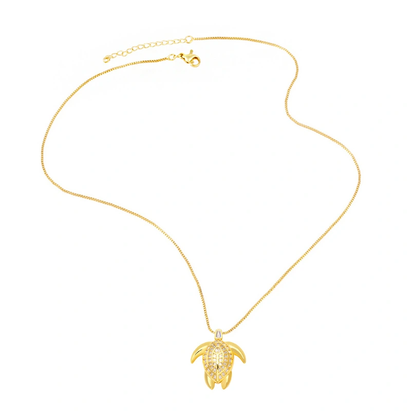 Collier pendentif tortue en zircon rétro européen et américain, chaîne de pull pour femme, personnalité créative, nkb565