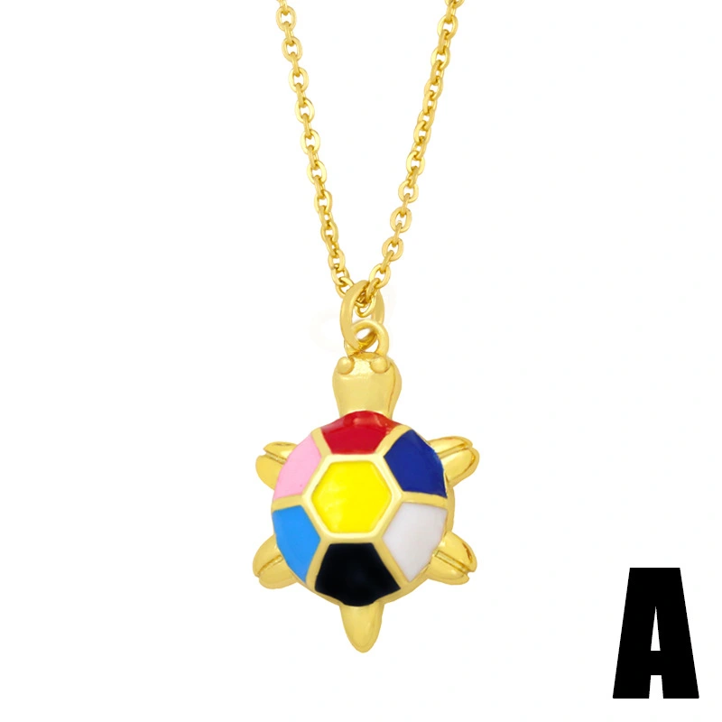 Collier pendentif tortue style océan, bijoux européens et américains, chaîne de clavicule multicolore en forme de goutte d'huile, vente en gros, nky28