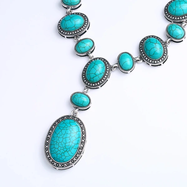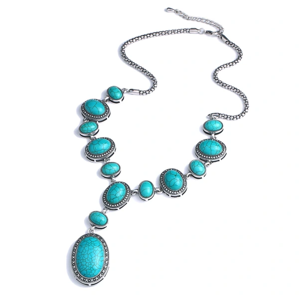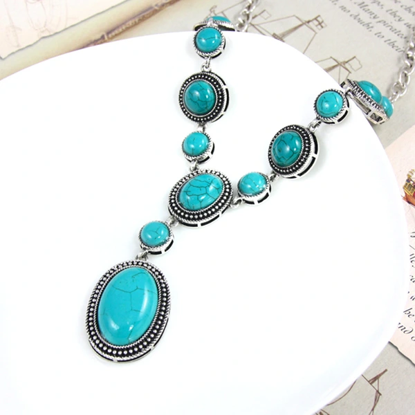 Collier pendentif turquoise sculpté pour femme, bijoux européens et américains, vente en gros, fabricants nkk48