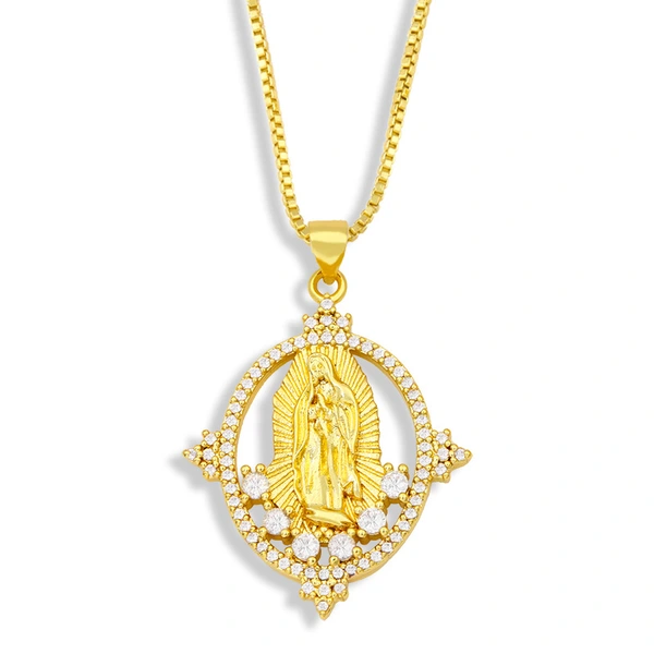 Collier pendentif Vierge Marie européen et américain avec diamant, totem religieux, chaîne de clavicule, accessoires nku97