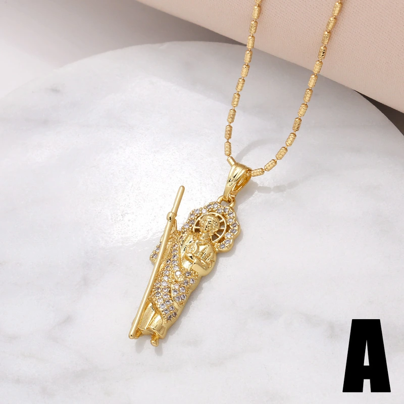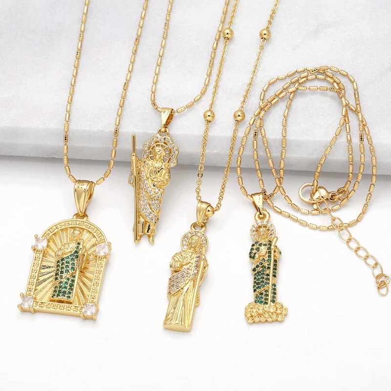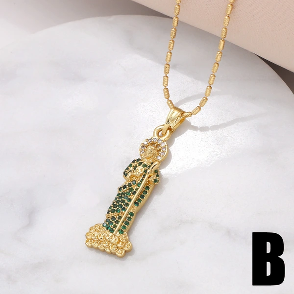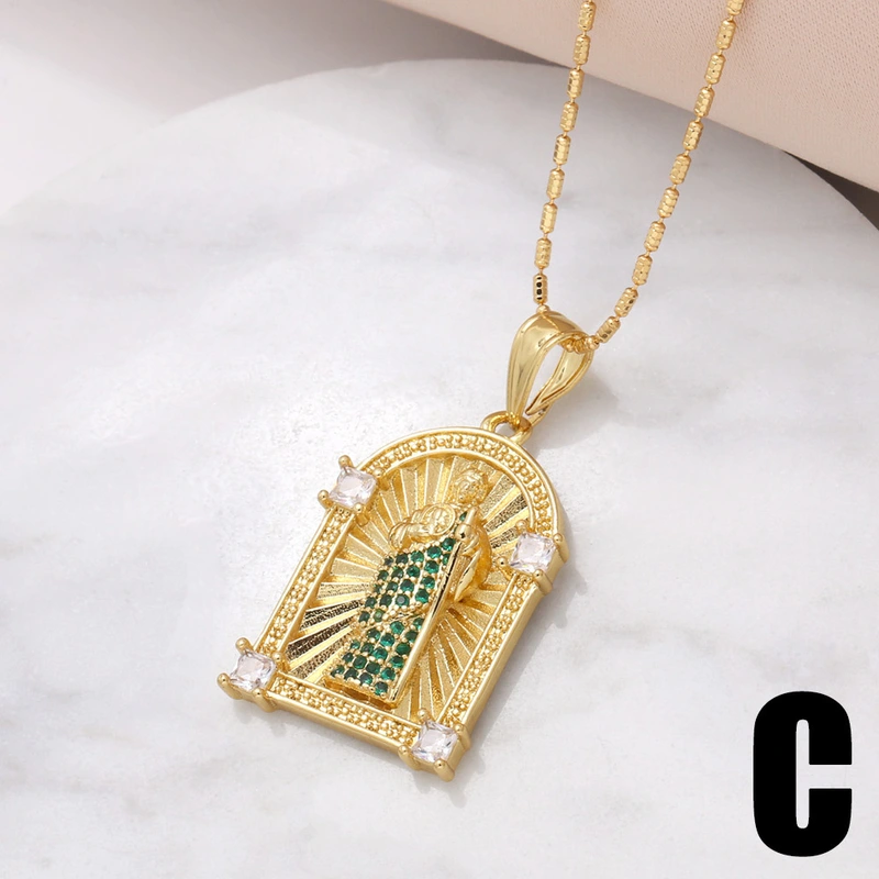 Collier pendentif Vierge Marie pour femme, bijoux européens et américains, plaqué cuivre, or 18 carats, incrusté de zircons, chaîne de clavicule nks37