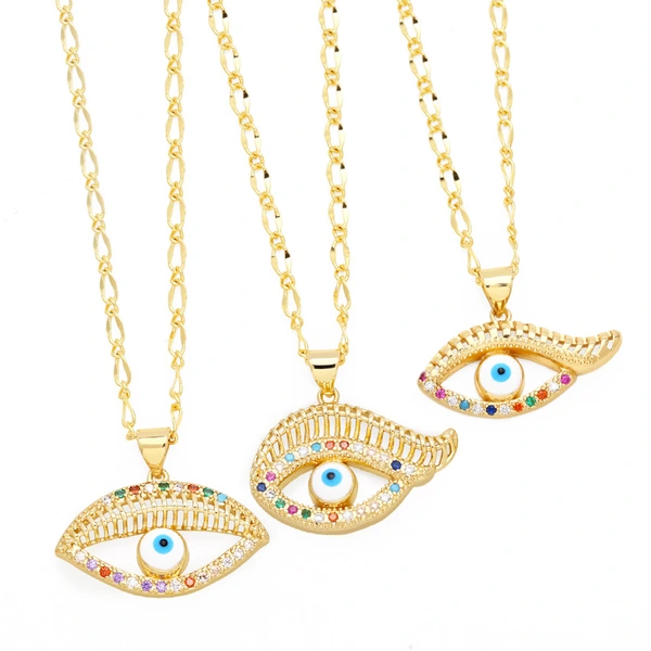 Collier personnalisé œil du diable en diamant coloré, design de niche européen et américain, pendentif œil du diable, vente en gros, nkt64