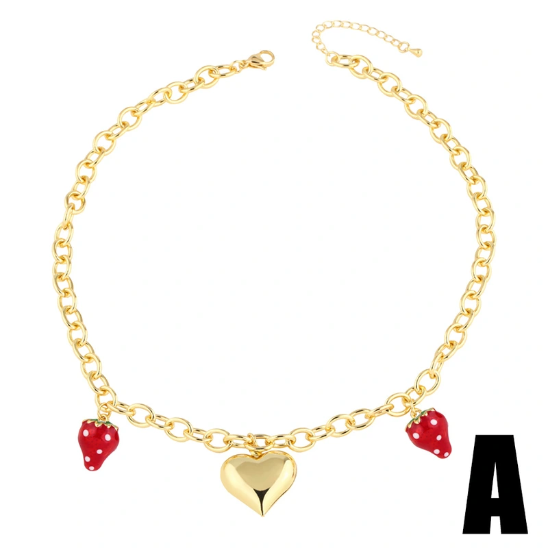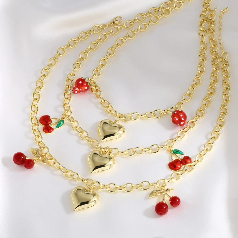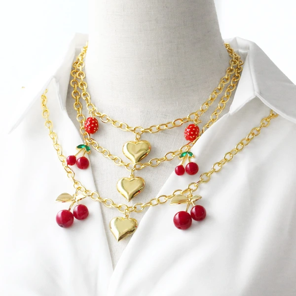 Collier plaqué or avec pendentif en forme de cerise et de fraise pour femme, bijou de liquidation, chaîne de clavicule, nkb238