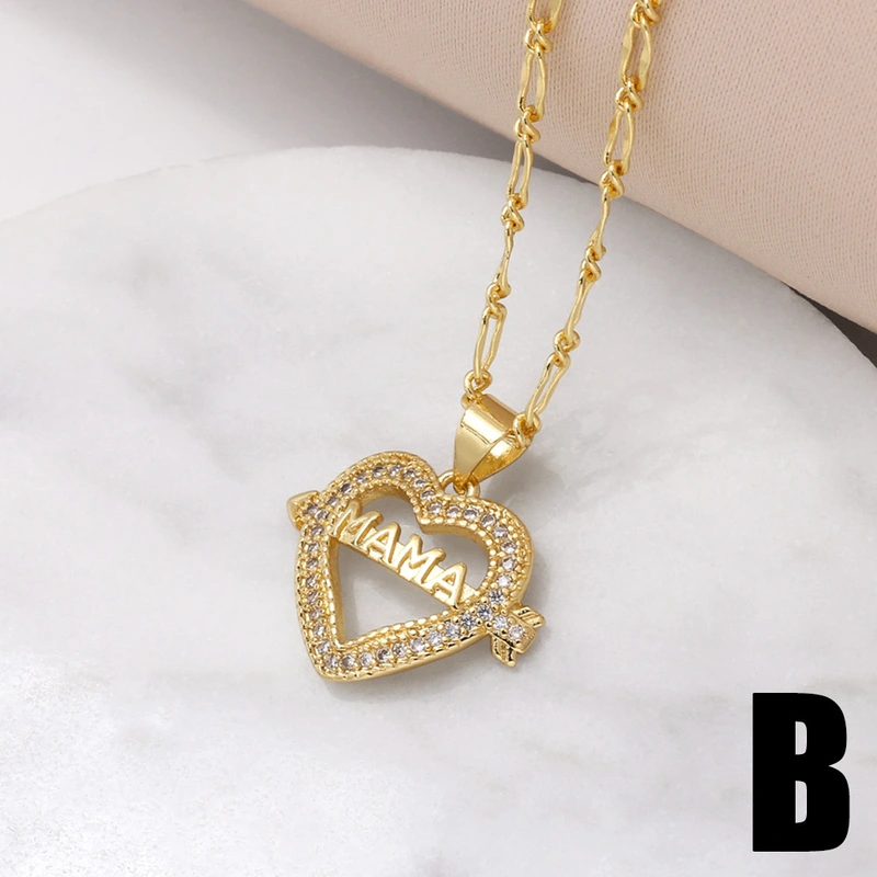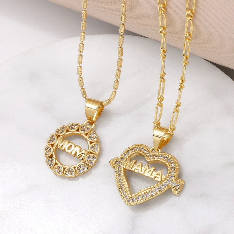 Collier plaqué or pour la fête des mères, chaîne de clavicule incrustée de zircons colorés, NKV36