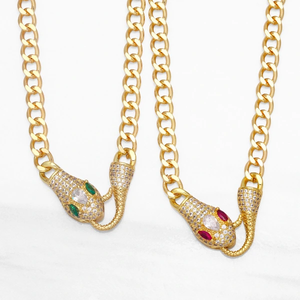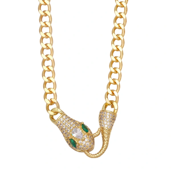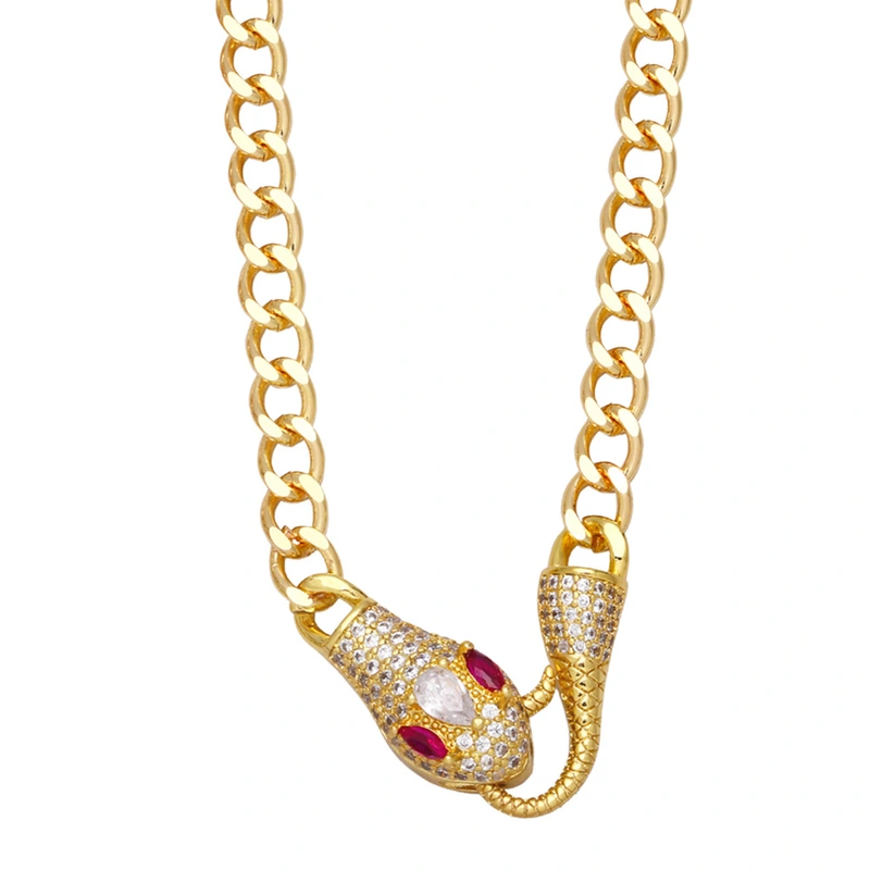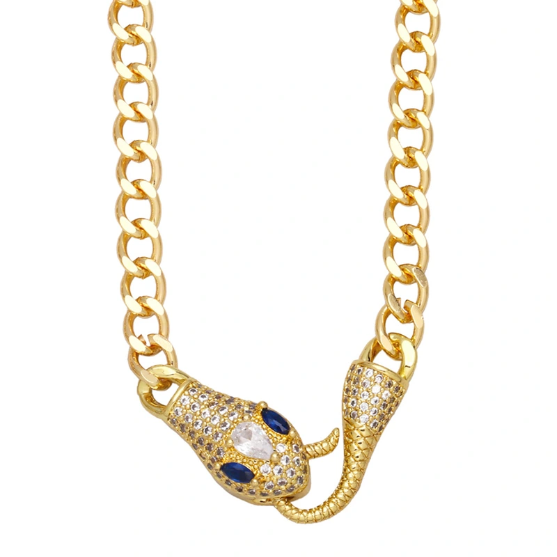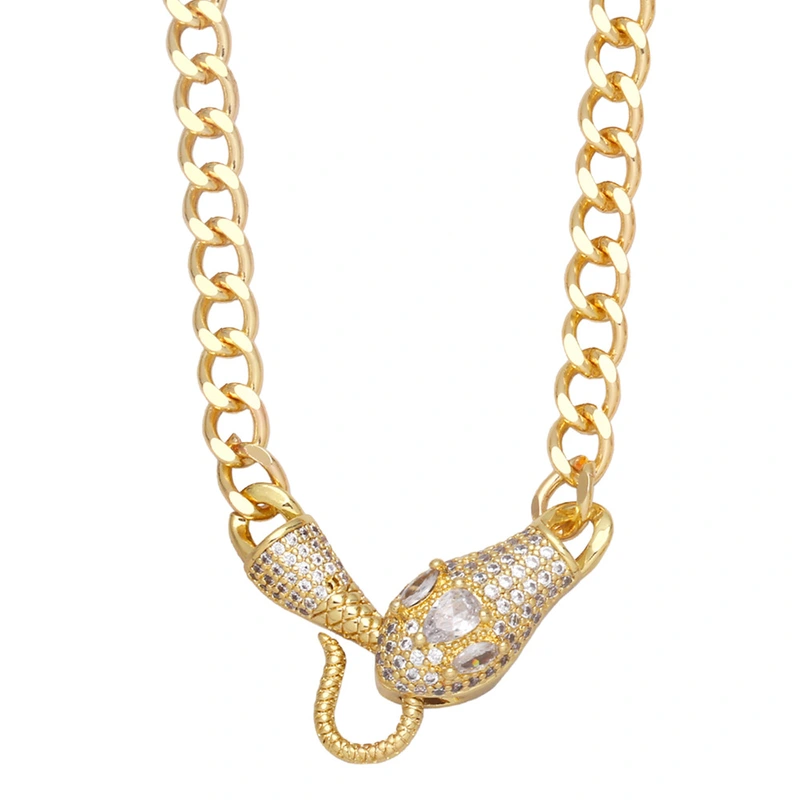 Collier serpent animal chaîne cubaine européen et américain exagéré punk hip-hop serpent plein de diamants collier unisexe nkb053