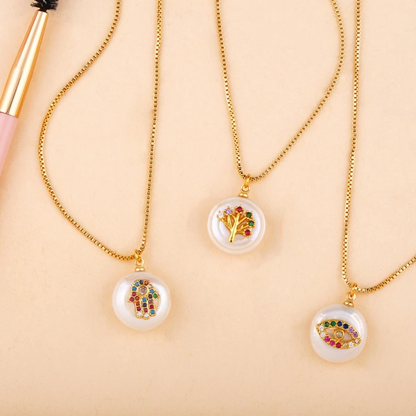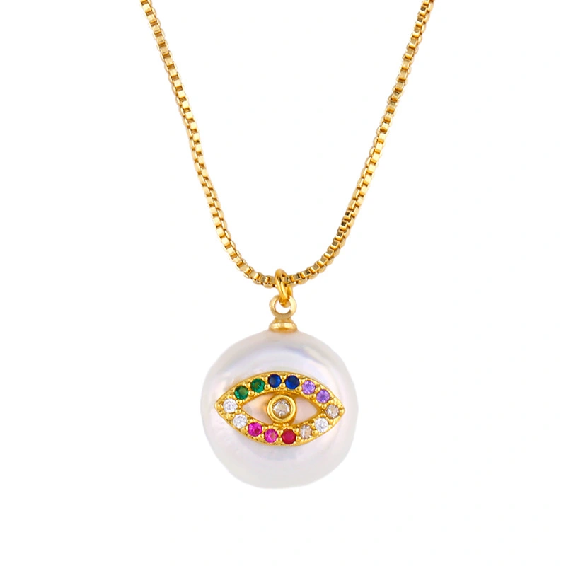 Collier style européen et américain, pendentif en perles baroques micro-incrustées de zircons, style filet rouge, nkp66