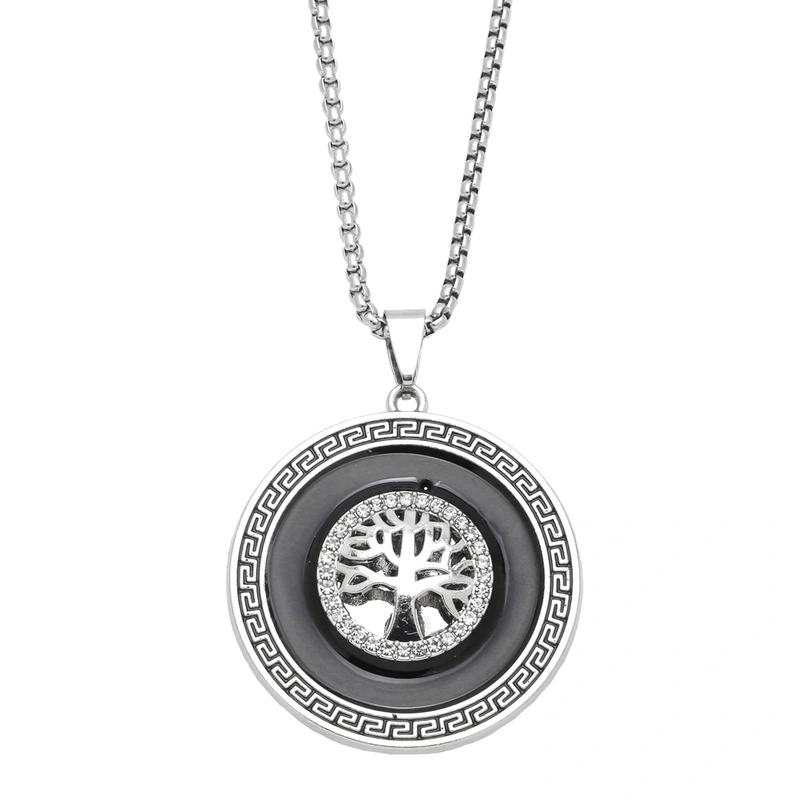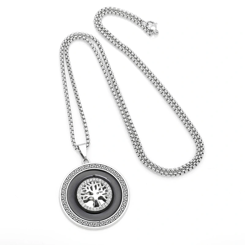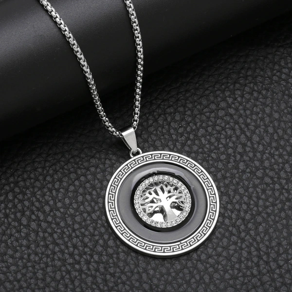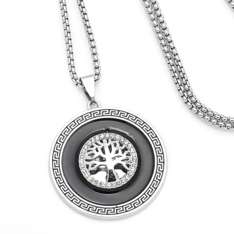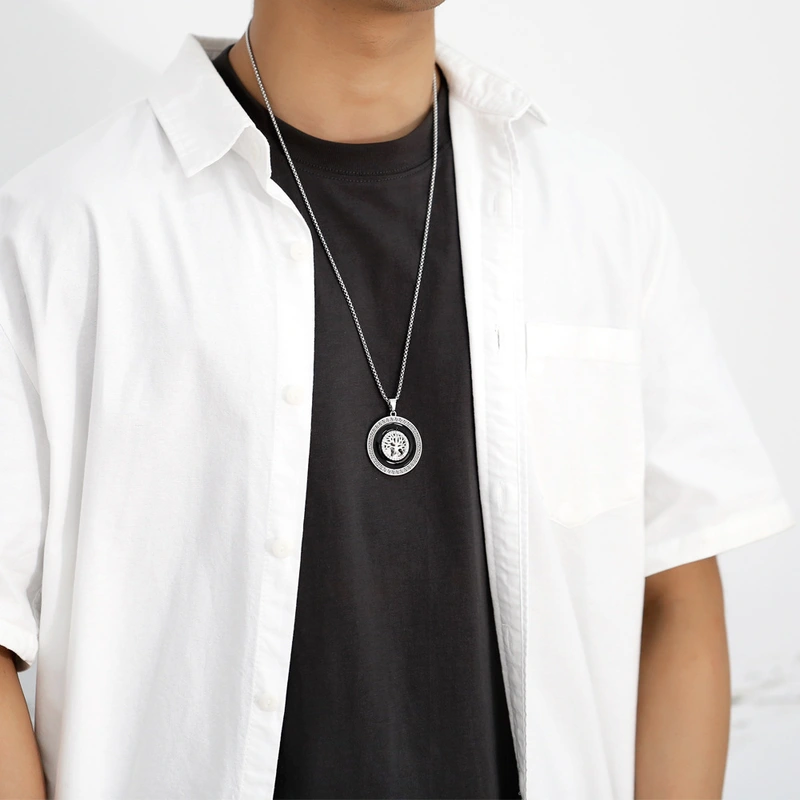 Collier tendance pour hommes, style européen et américain, pendentif arbre de vie rétro, longue chaîne de pull en acier inoxydable, nkz89
