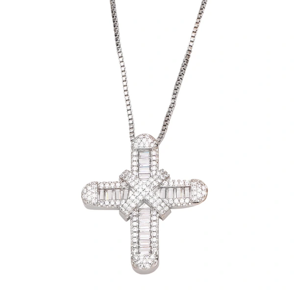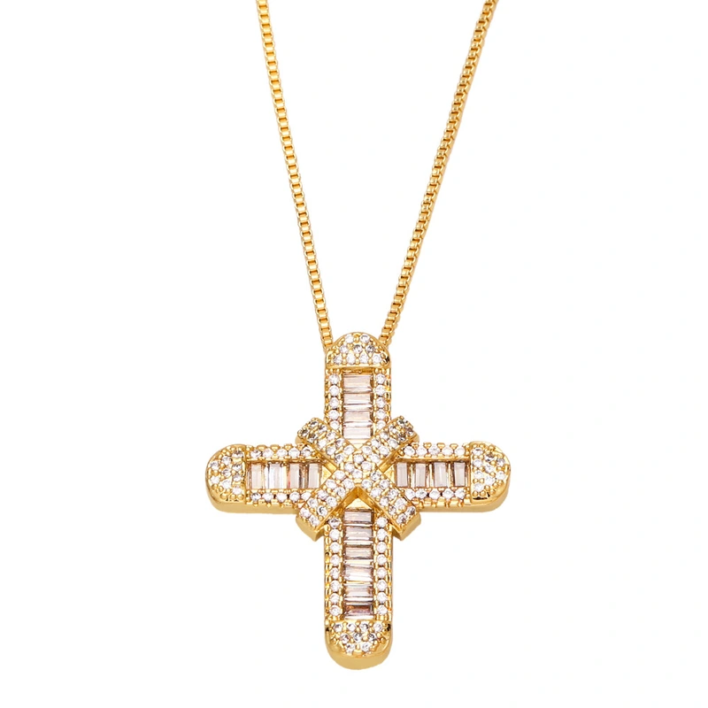 Collier unisexe avec pendentif croix hip-hop de personnalité européenne et américaine, design de niche, entièrement en diamant et zircon, pour couple, nkb155