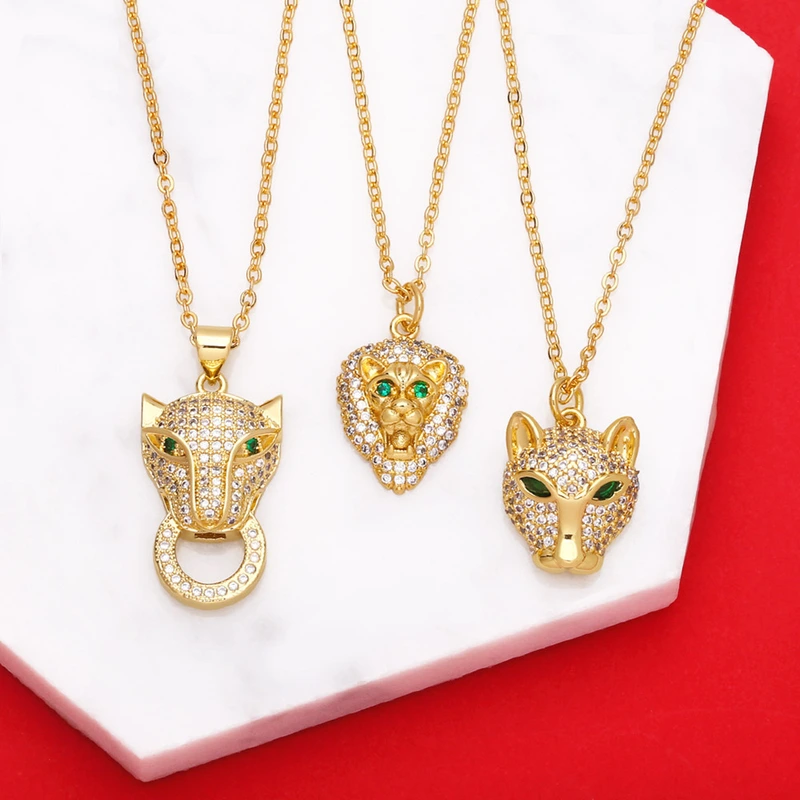 Collier unisexe avec pendentif tête de léopard en zircon, style hip-hop européen et américain, soldes nkb193