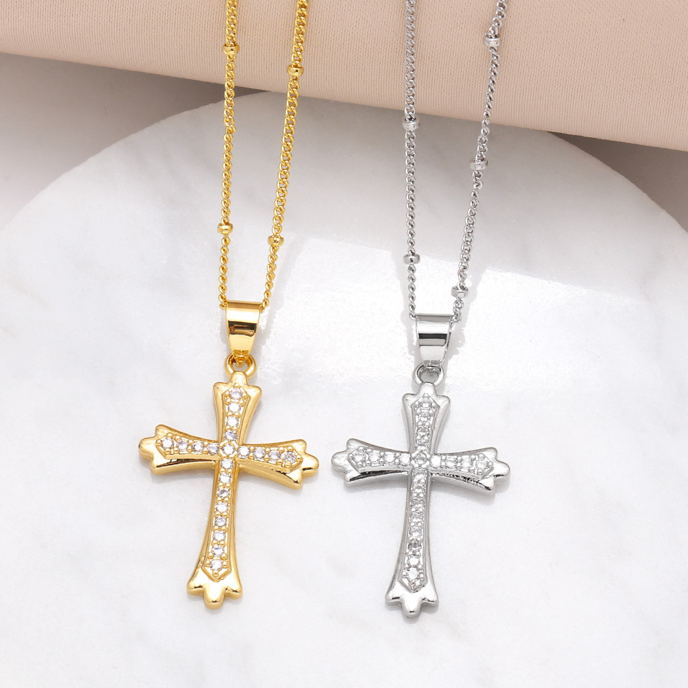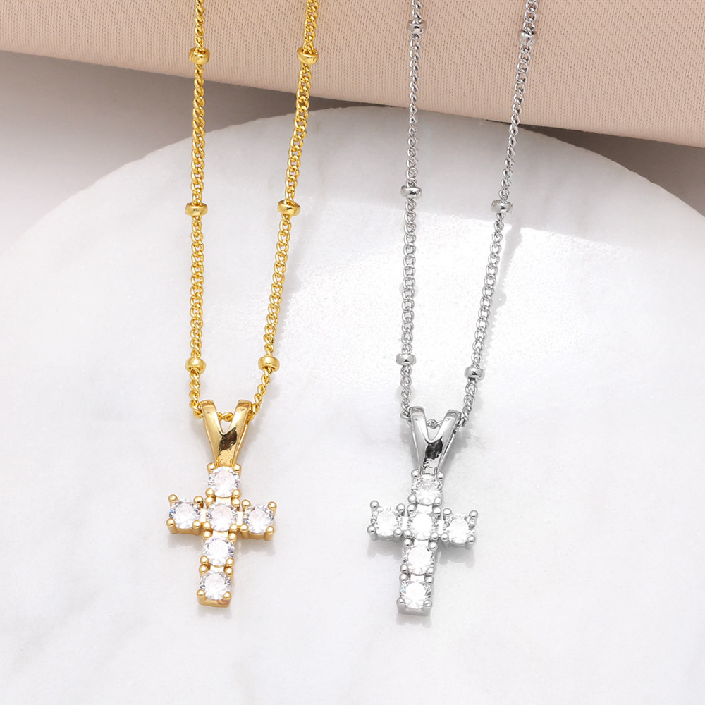 Collier avec pendentif croix en perles d'amour, style européen et américain, plaqué or, chaîne de clavicule en zircone nkb146
