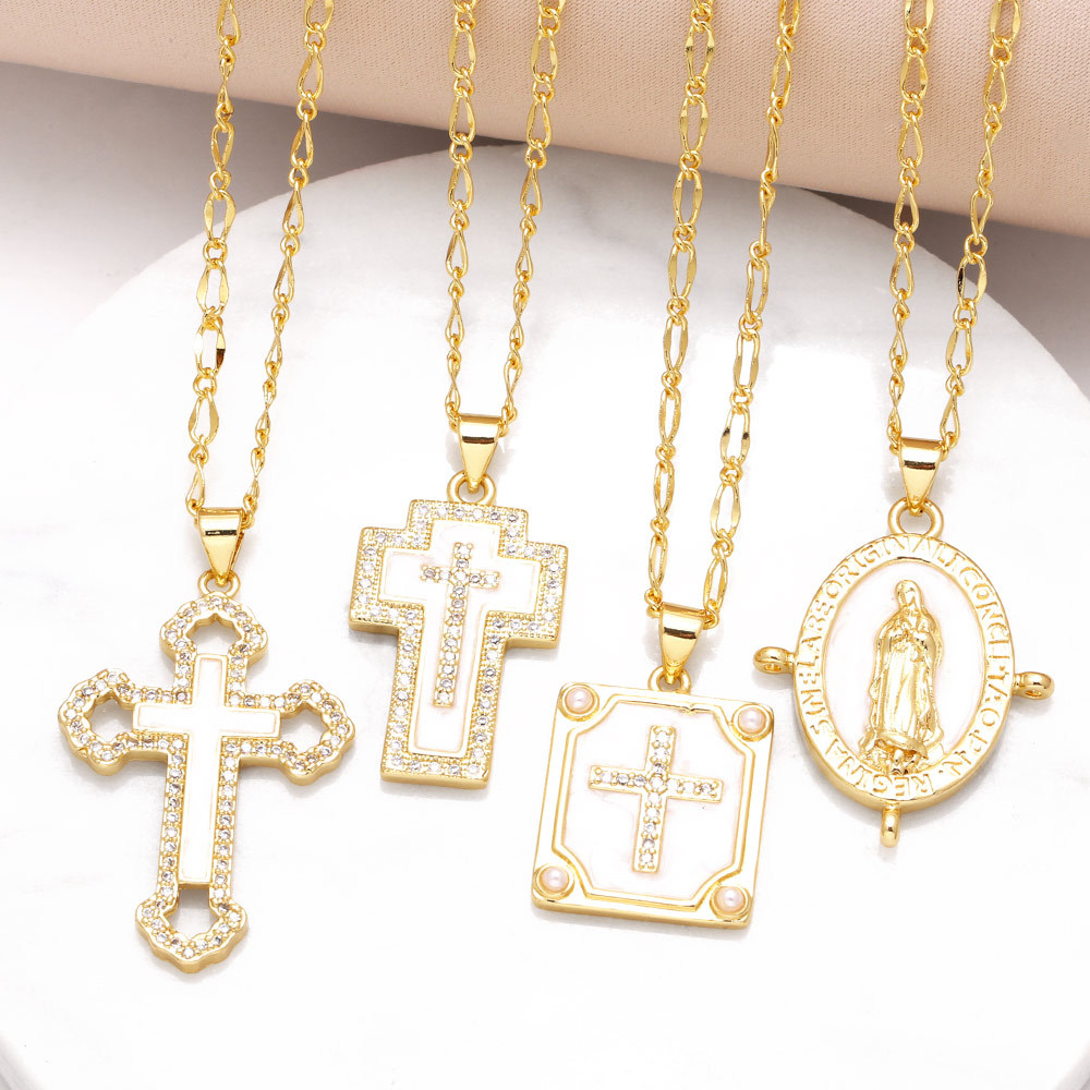 Collier pendentif croix Madonna en plaqué cuivre véritable or, chaîne de pull polyvalente nkw05