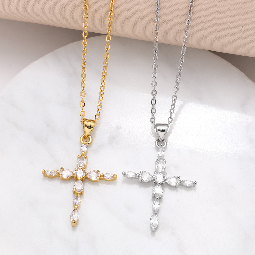 Collier pendentif croix en zircon pour femme, bijou tendance, style européen et américain, nkb761