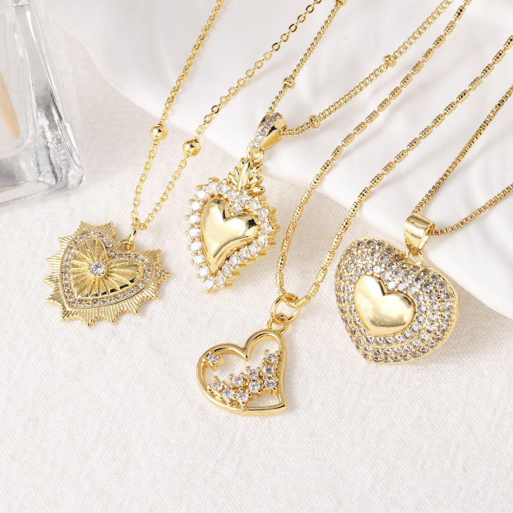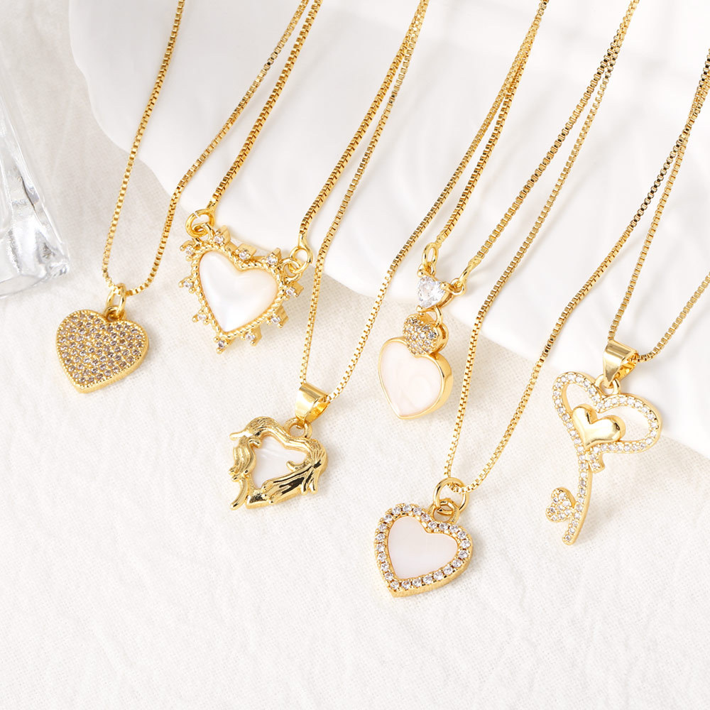 Collier en forme de cœur en zircon plaqué cuivre et or 18 carats, chaîne de clavicule, très populaire en Europe et aux États-Unis, nkp35