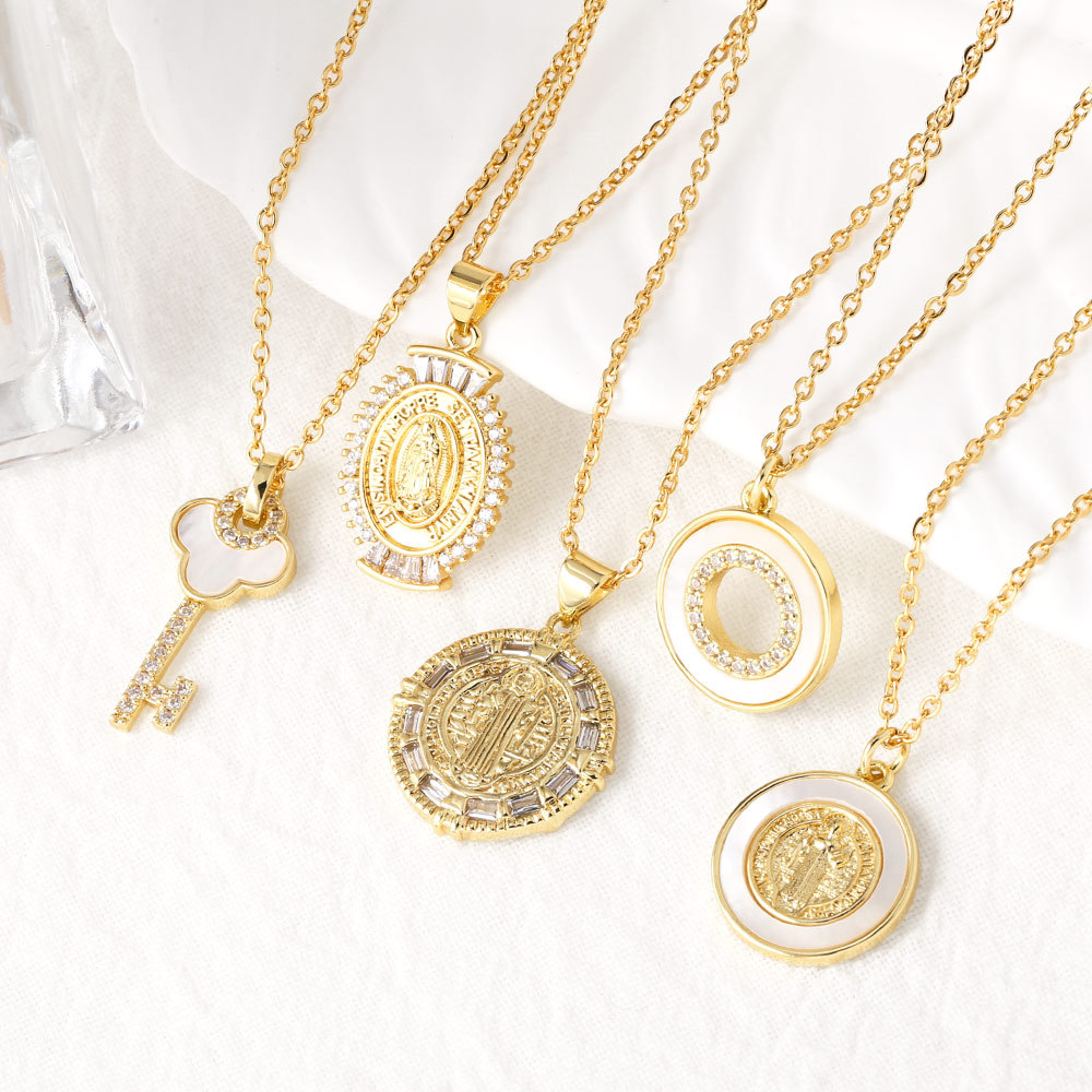 Collier avec pendentif clé de la Vierge Marie en or 18 carats plaqué cuivre, chaîne de clavicule, très populaire en Europe et aux États-Unis, nkb437