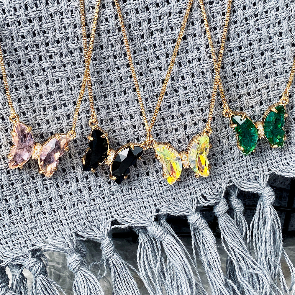 Collier papillon en cristal de rêve de super fée coréenne, pendentif en verre dégradé de célébrité, chaîne de clavicule pour femme