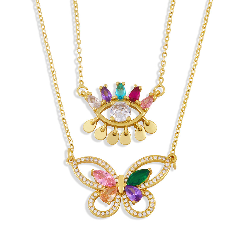 Collier papillon incrusté de zircons colorés pour femme, style européen et américain, chaîne ras du cou, clavicule, œil, nkw22