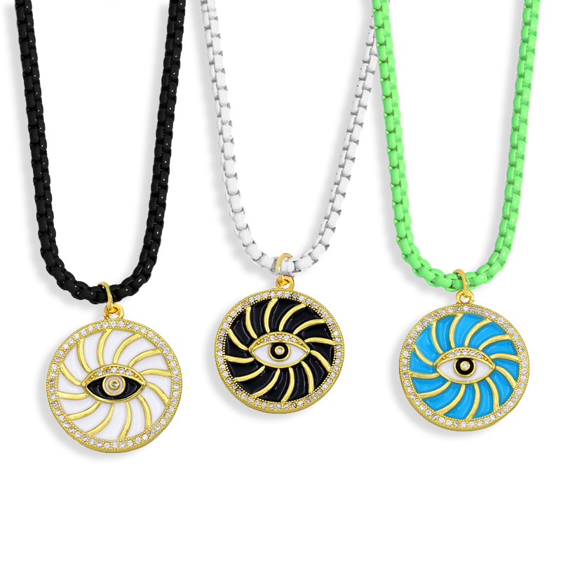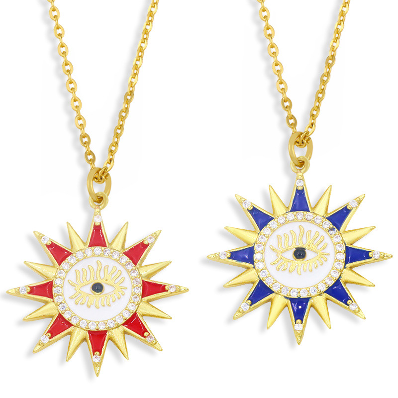 Vente de liquidation de nouveaux bijoux européens et américains punk exagéré marée huile goutte diamant soleil œil pendentif collier nkw70