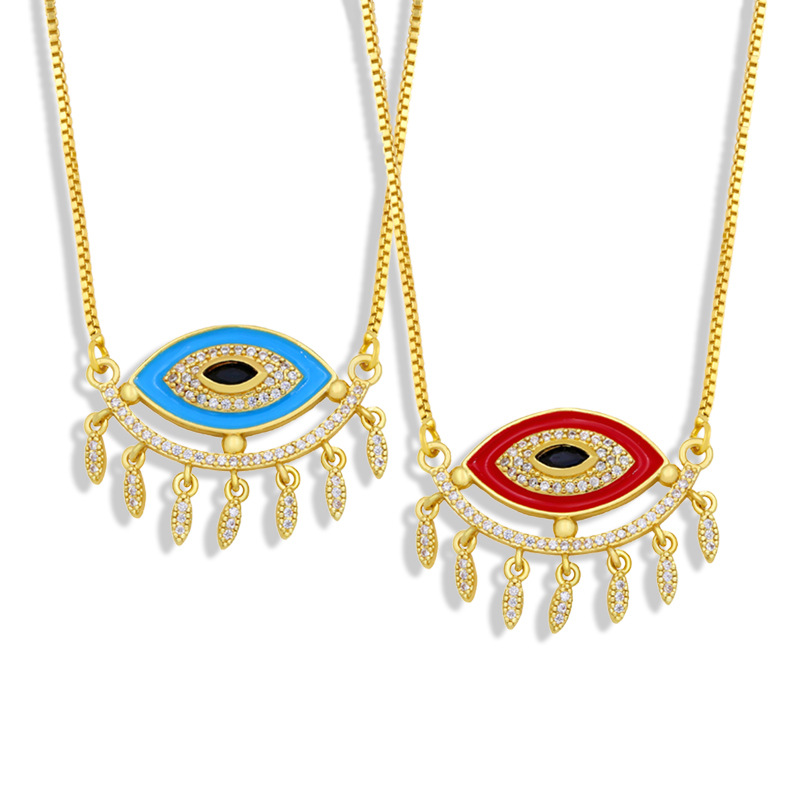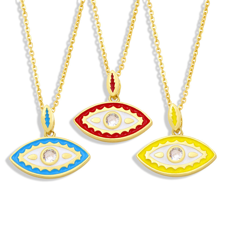 Collier avec pendentif œil du diable en zircon incrusté de galvanoplastie en or véritable 18 carats, bijoux européens et américains en forme de goutte d'huile, nky21