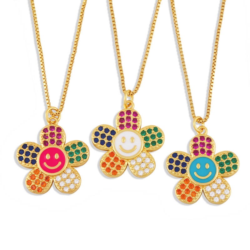 Collier fleur en zircon coloré, bijoux de déstockage, personnalité, expression souriante, chaîne de clavicule, collier créatif nkw84