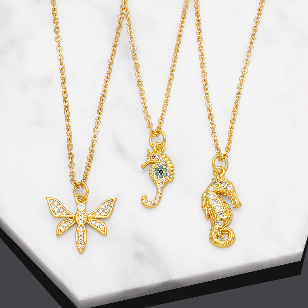 Collier avec pendentif en forme d'hippocampe, style européen et américain, simple et polyvalent, chaîne de pull, nkb513