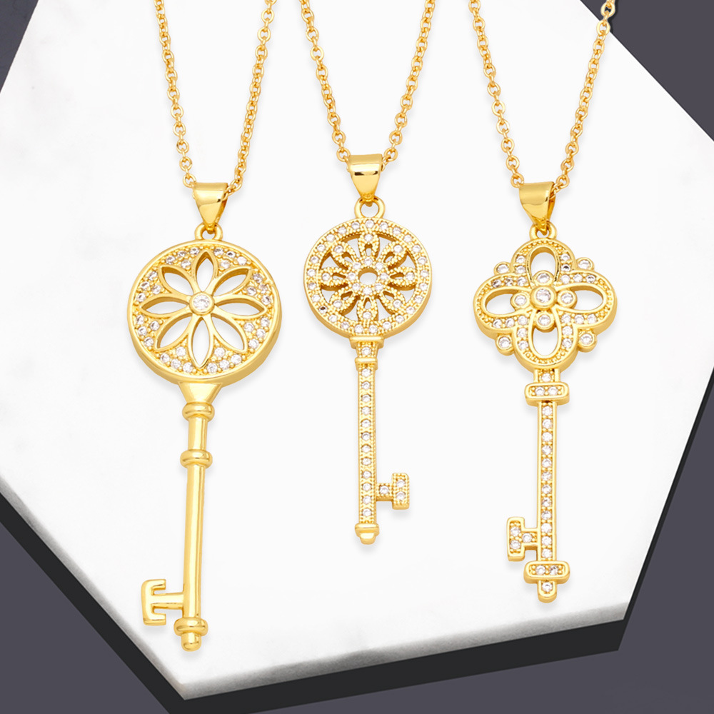 Collier clé fleur en liquidation, chaîne de pull pour femmes européennes et américaines, accessoires simples en diamant, collier de luxe léger de niche nkb570