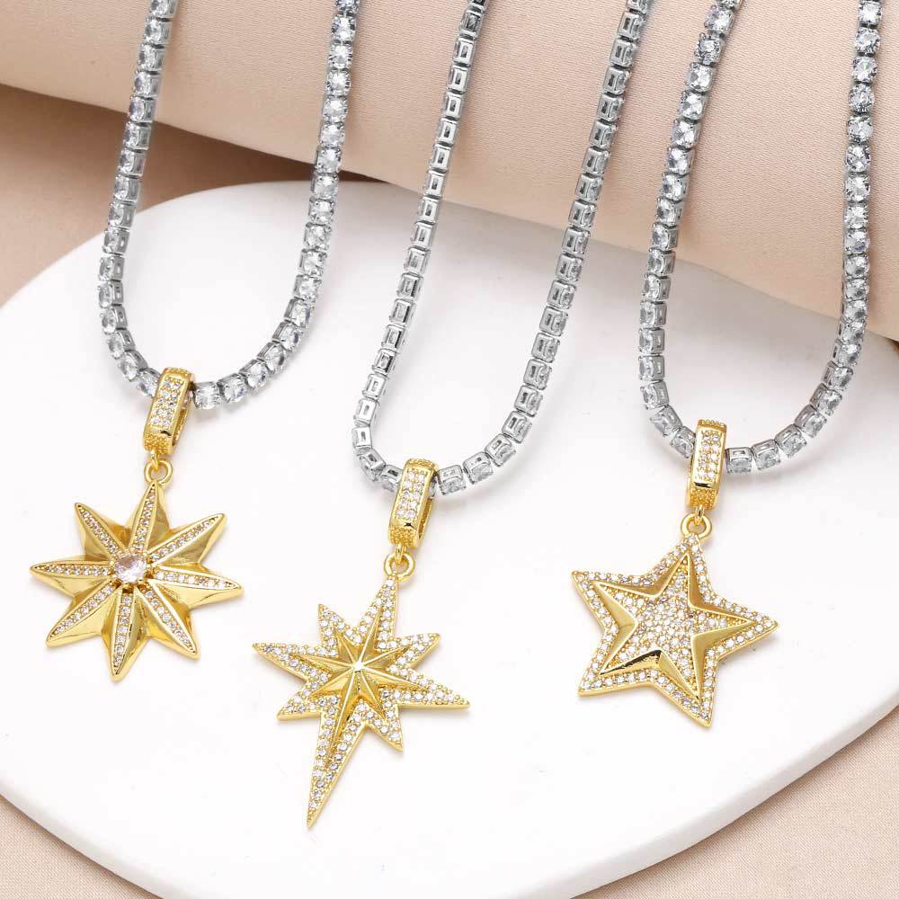 Collier étoile à cinq branches plaqué or, chaîne de clavicule étoile en zircon, style européen et américain, nkt18