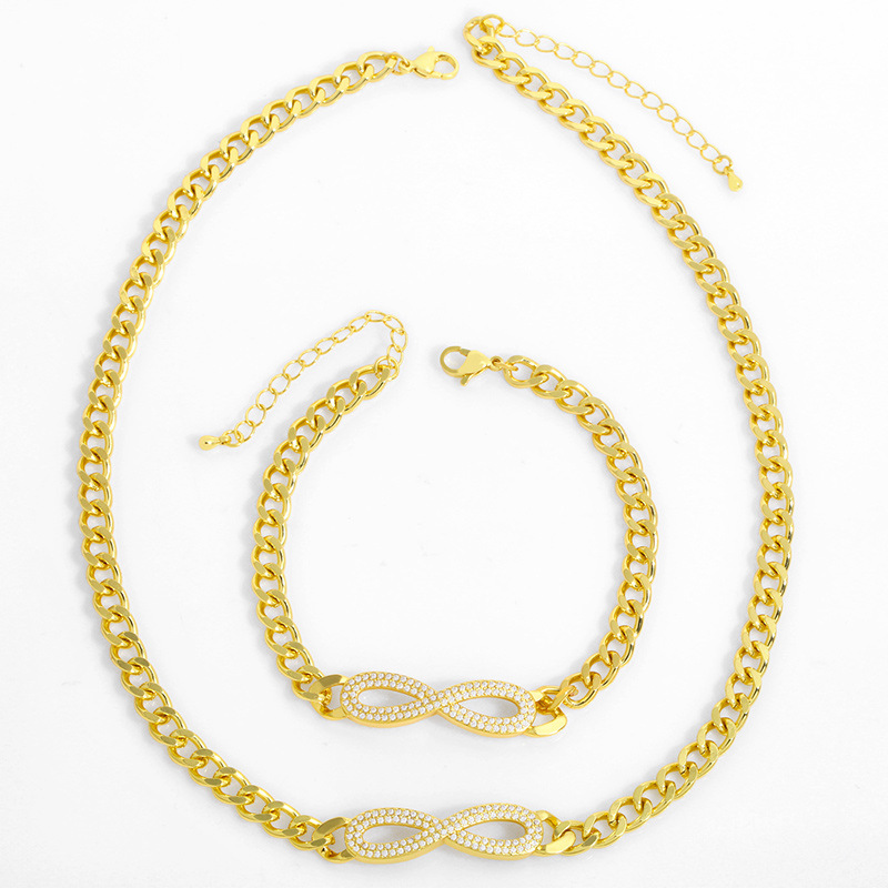 Collier simple en forme de 8, symbole de l'infini, chaîne cubaine, bracelet, chaîne de clavicule, cadeau de Saint-Valentin, bijoux nkt76