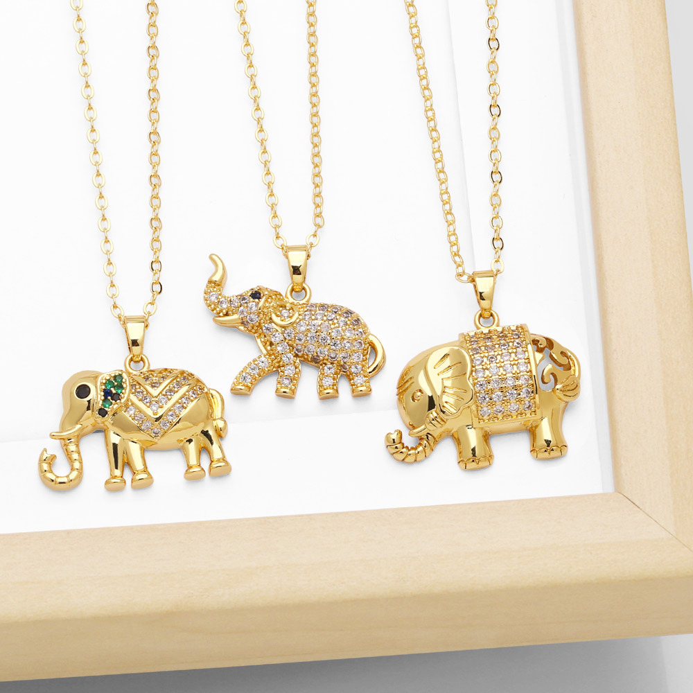 Collier éléphant populaire européen et américain tempérament féminin polyvalent incrusté zircon plaqué or hip-hop chaîne de clavicule bijoux nkb818