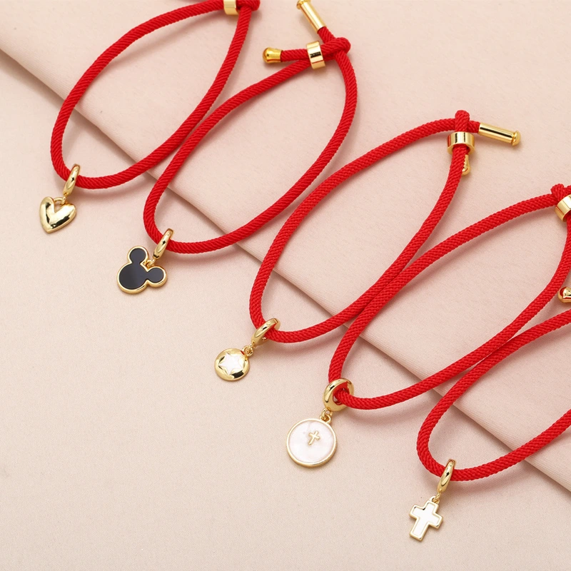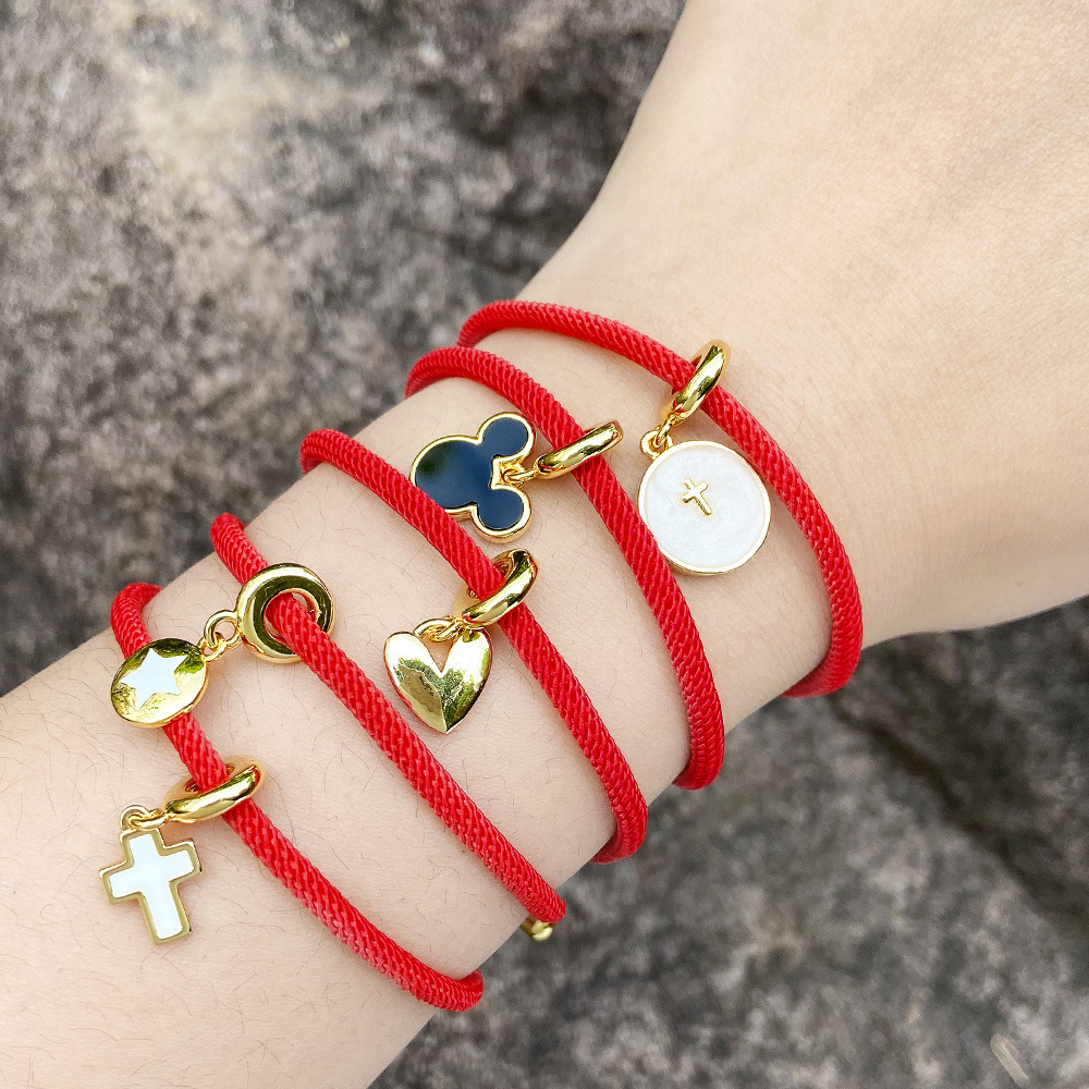 comme bijoux avec bracelet croix goutte d'huile plaqué or amour cœur étoile bracelet corde rouge bre41