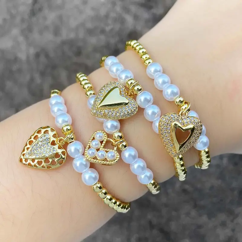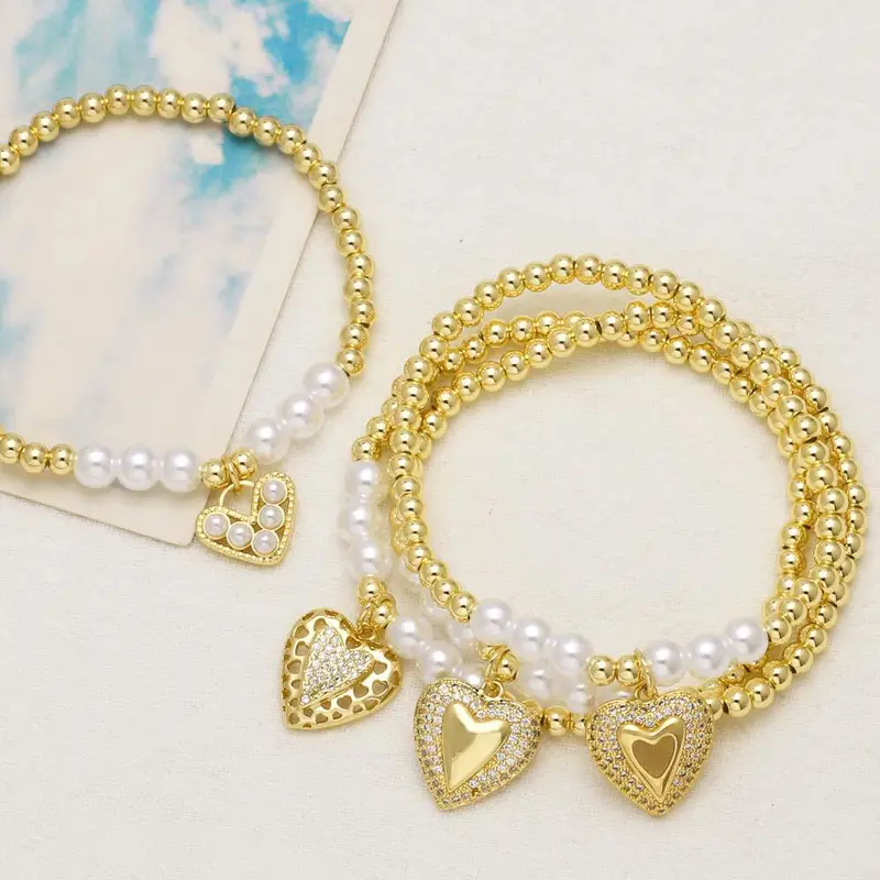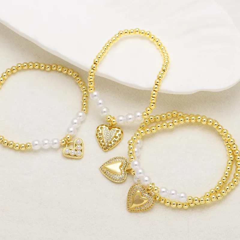 comme bijoux européen et américain amour coeur perle bracelet en perles plaqué or bracelet bra15 bracelet