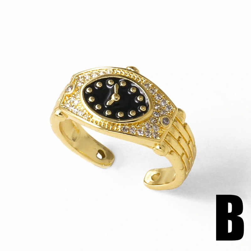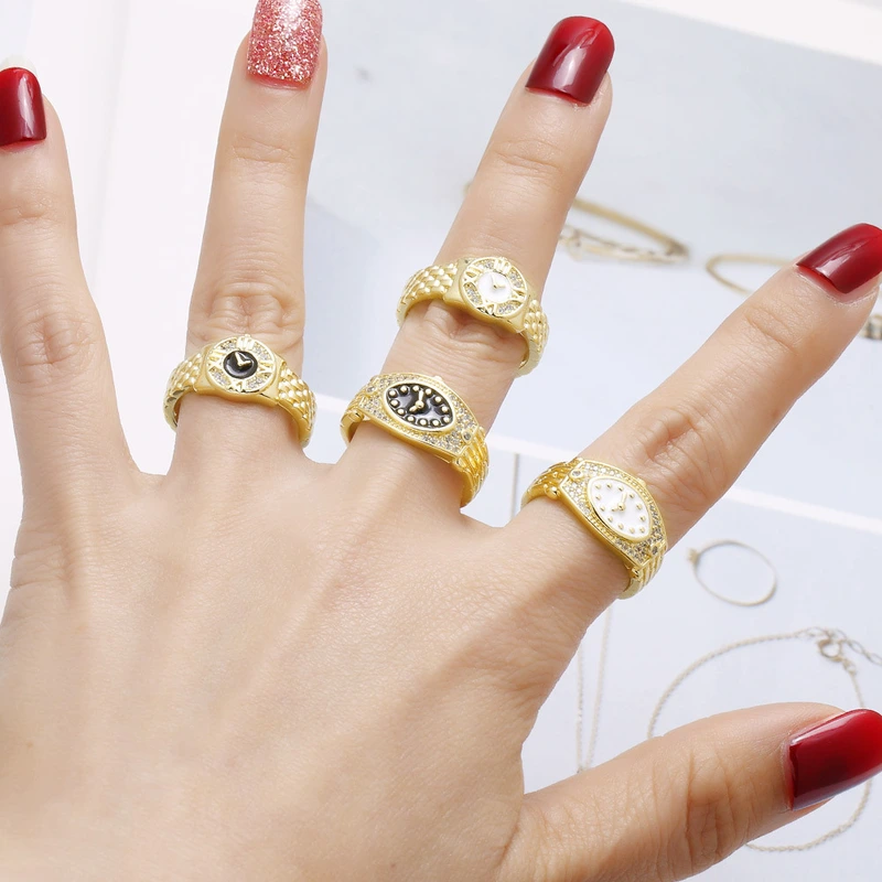 comme bijoux peau de crevette nouvelle montre zircon haut de gamme horloge anneau ouvert bague femme rir04
