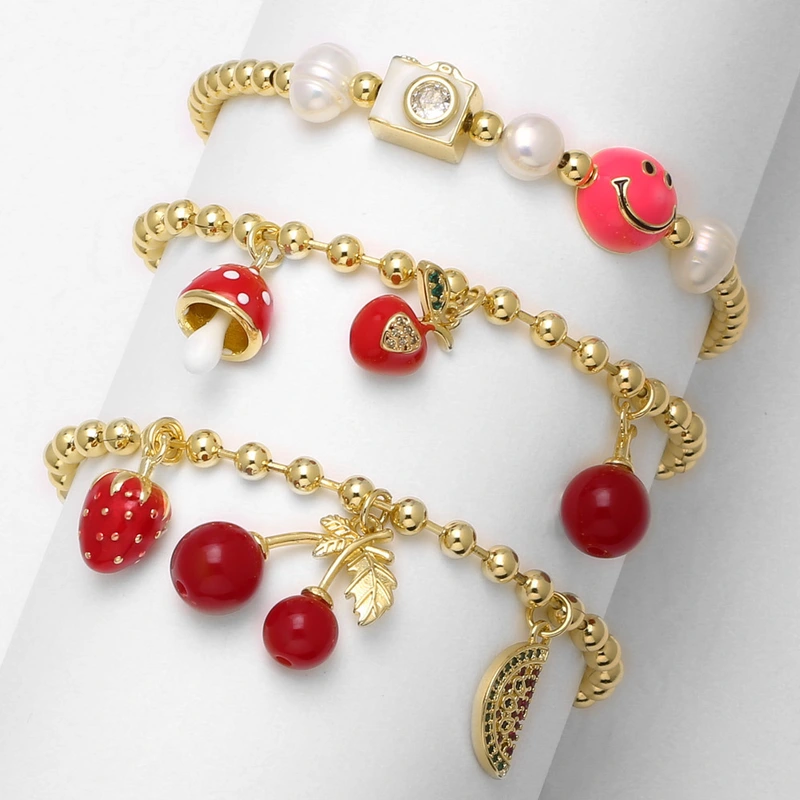 comme bijoux tout-assorti fruit cerise fraise plaqué or pendentif bracelet bracelet brf96 bracelet